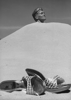 Here, a patient idly files her nails while sitting in an Electro-Magnetic Loop said to prevent aging. I'm somehow reminded of Sleeper. These photos are so spookily atmospheric, full of Hitchcock Blondes and perhaps even murder. But first! A series of healing, prettying baths.